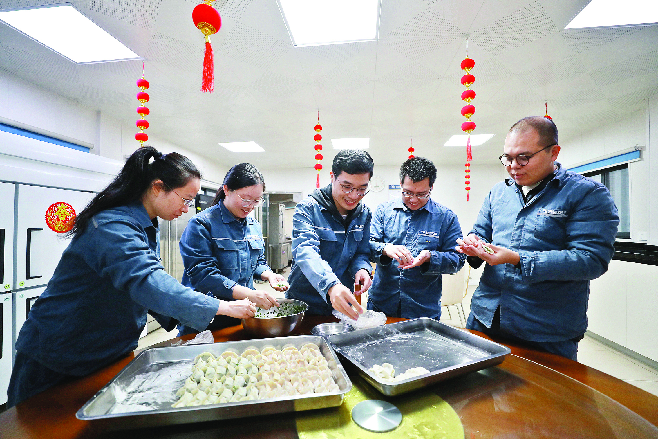 惠州供電局220伏誠信巡維中心春節(jié)值班人員除夕一起包餃子。 惠州日報記者張藝明 攝