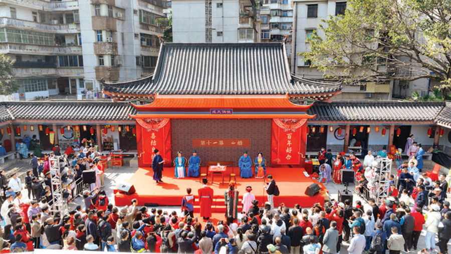 宋式婚禮秀吸引眾多游客駐足圍觀。