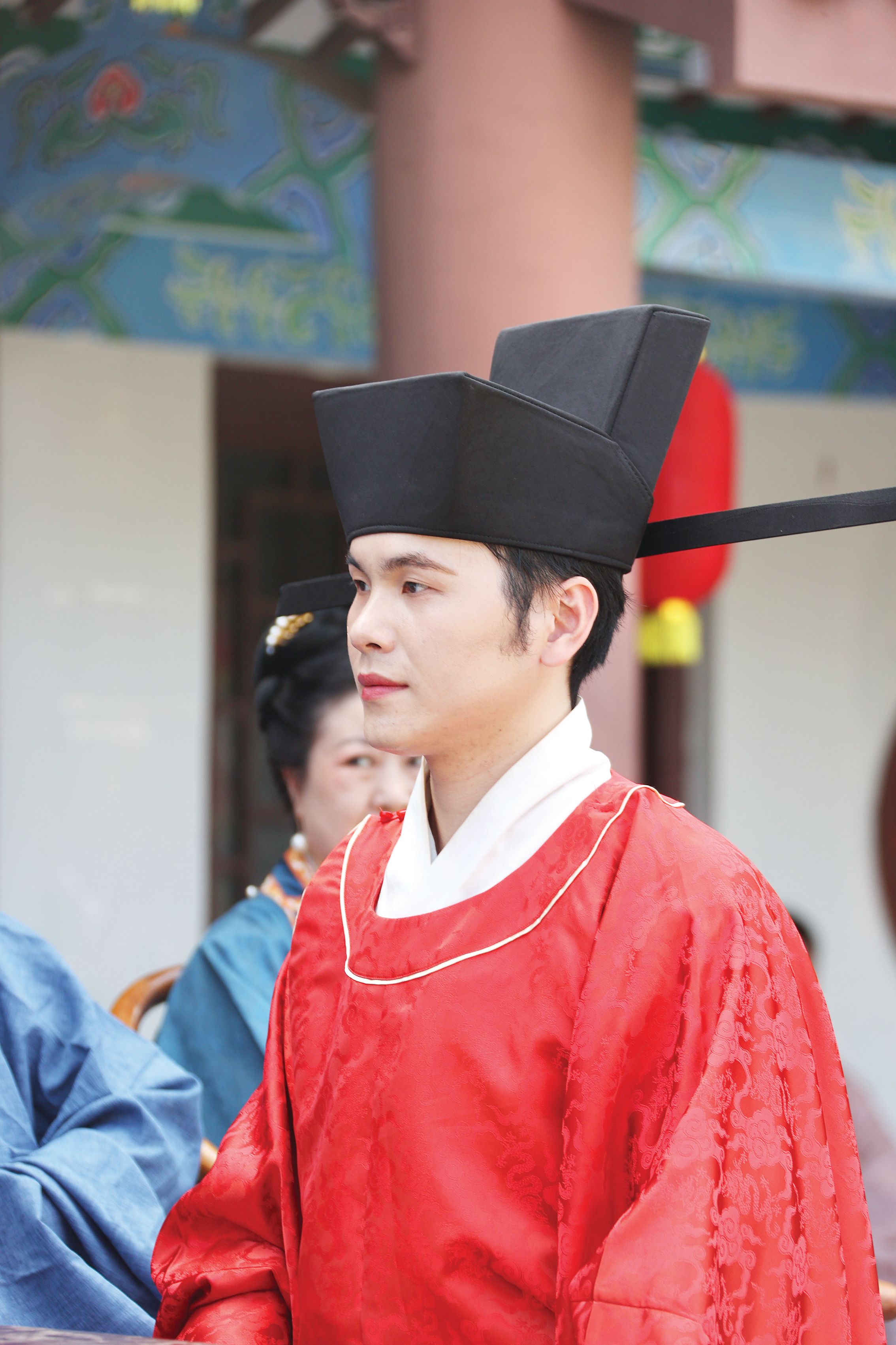 來自陜西漢中的唐東是一名專業(yè)婚禮策劃、主持人。一個月前,他接到了扮演蘇東坡角色的任務(wù),擔(dān)任“儐相”一職。唐東說,在宋式婚禮秀中,儐相角色臺詞多,而且是文言文,自己第一次演繹“蘇東坡”角色,如何展現(xiàn)東坡先生的豪邁之情,給他帶來一定的挑戰(zhàn)。時間緊、任務(wù)重,唐東前期查閱資料學(xué)習(xí)東坡文化,希望將角色演繹得盡善盡美。同時,他還參與臺詞的編排和流程的制定及完善,對婚禮秀演繹場景提出專業(yè)的意見建議。