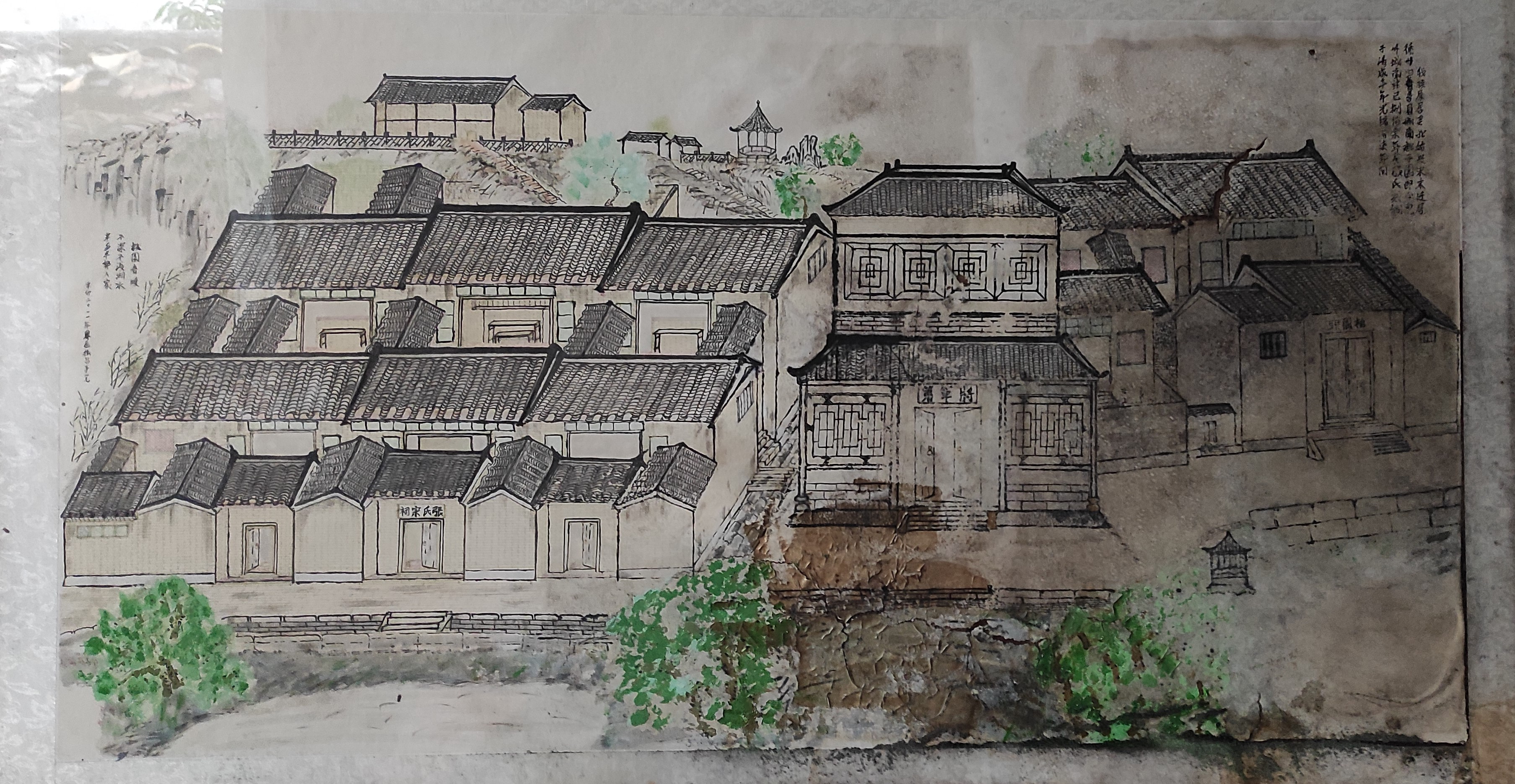 從后人的繪圖來看,張氏古建筑順著木荊岡的山勢(shì)而建,由南至北,分為張氏宗祠、將軍第、桃園三部分。