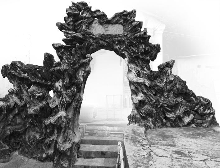 從有德堂大廳后門出去,可見一個(gè)仿太湖石修砌的拱門,造型獨(dú)特,保存完好。拱門上鑲嵌有一塊石碑,刻寫“梅塢”二字,為晚清著名金石書畫家符翕手書!懊穳]”與蘇東坡所寫松風(fēng)亭下的梅花遙相呼應(yīng),別有韻味。