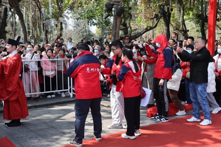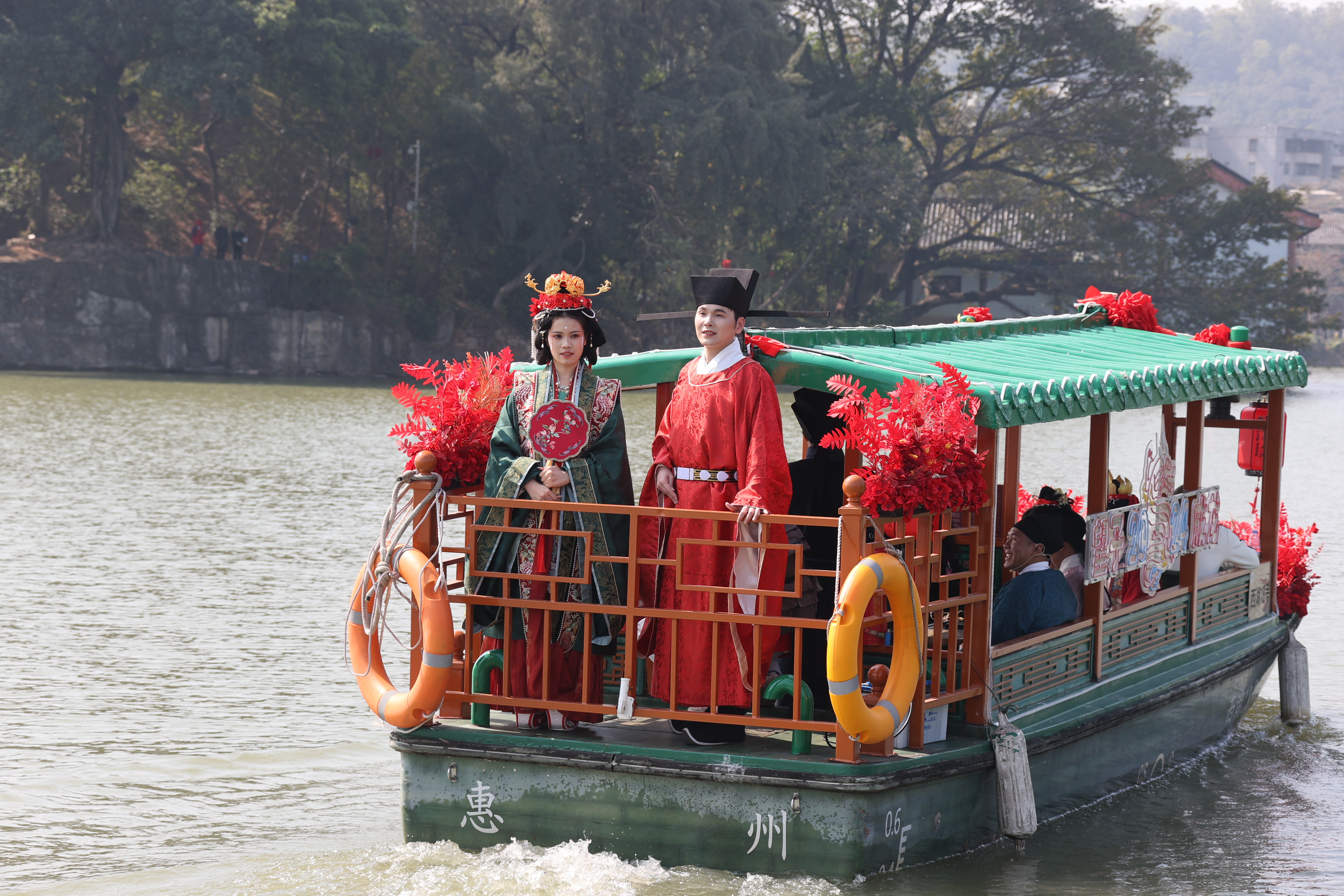 這個(gè)春節(jié),大年初一至初七,由中共惠州市委宣傳部、市文化廣電旅游體育局指導(dǎo),惠州日?qǐng)?bào)社、惠州市西湖景區(qū)管理中心主辦的“‘羅浮山下四時(shí)春’——嶺南書院·豐湖書院春節(jié)主題活動(dòng)”每天為市民游客及線上網(wǎng)友帶來(lái)了一場(chǎng)精彩“夢(mèng)回大宋·宋式婚禮秀”。