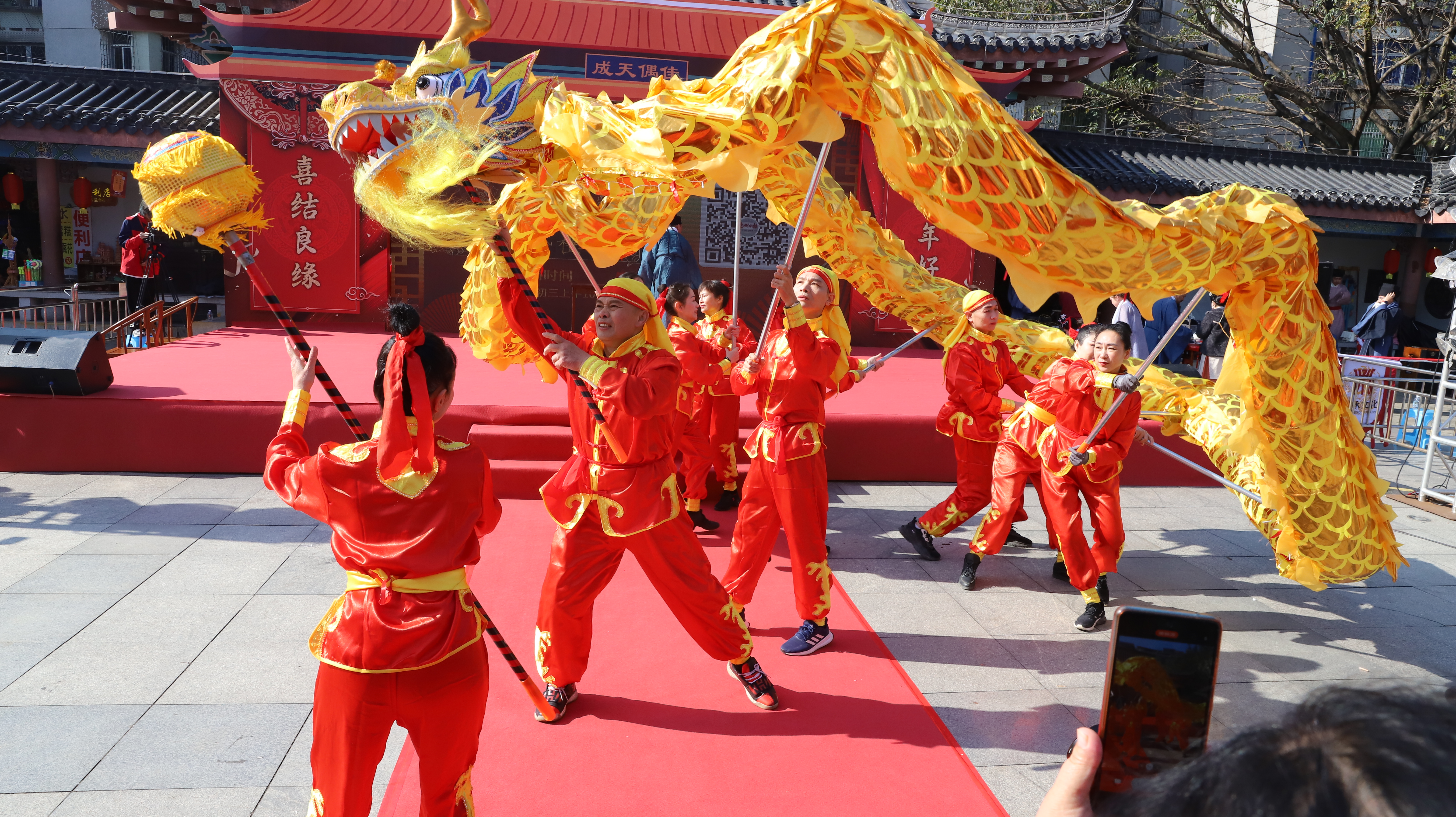宋式婚禮秀現(xiàn)場(chǎng)舞龍助興。