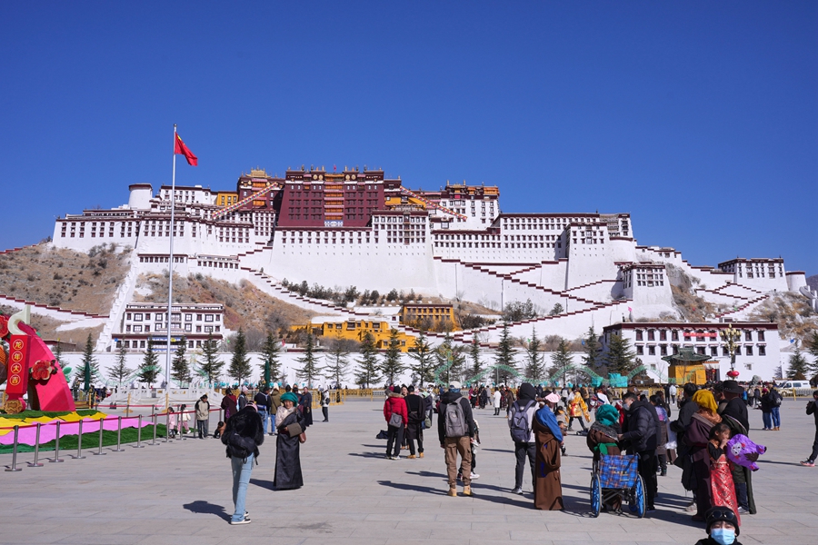 大年初三,等待進(jìn)入布達(dá)拉宮的游客們排起了長(zhǎng)隊(duì)。