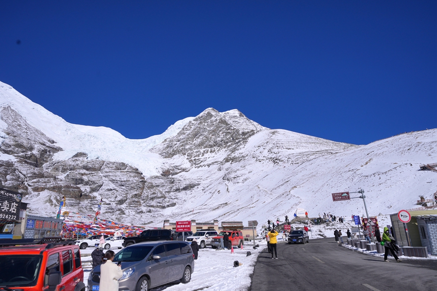 大年初七,卡若拉冰川下,游人如織。