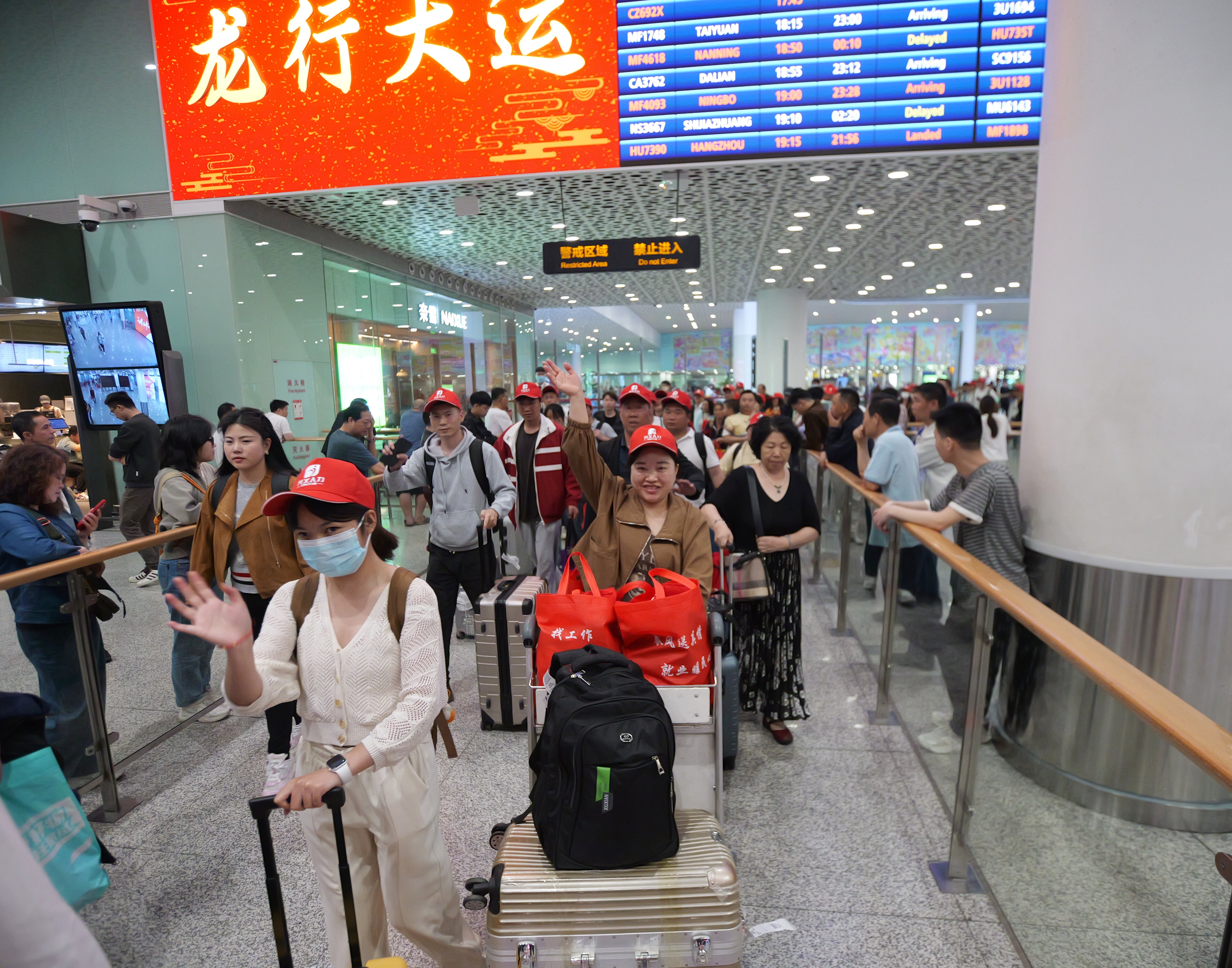 2月21日晚10時30分許,一架從黔西南興義萬峰林機場起飛的飛機飛越1050公里,平穩(wěn)降落在深圳寶安國際機場。來自黔西南的100名返崗務(wù)工人員下機后,乘上大巴包車安全有序返回企業(yè),開啟了新一年的惠州生活。
