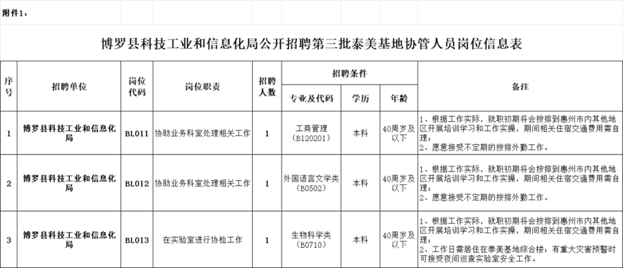 博羅縣科技工業(yè)和信息化局公開招聘第三批泰美基地協(xié)管人員
