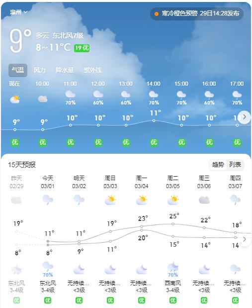 惠州發(fā)布寒冷橙色預(yù)警