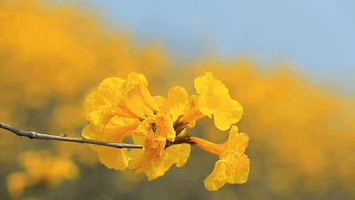 中海湯泉的黃花風(fēng)鈴木如約綻放,