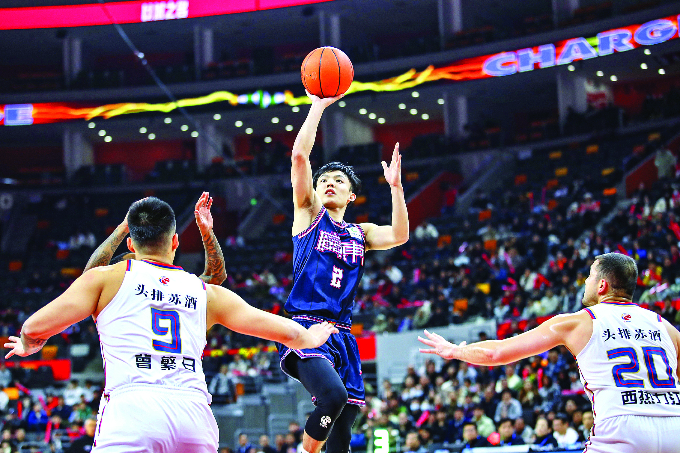 1月28日,廣東隊球員徐杰(中)在CBA常規(guī)賽比賽中投籃。 新華社發(fā)