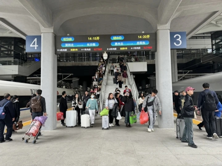 “對(duì)比2023年春運(yùn),今年惠州北站客流大幅增加,節(jié)前、節(jié)后往返客流比較均衡,并持續(xù)保持高位運(yùn)行。2024年春運(yùn),惠州北站工作人員全部到崗,以飽滿的熱情和優(yōu)質(zhì)的服務(wù),全力保障惠州人民平安出行!被葜荼闭靖闭鹃L(zhǎng)任超介紹。