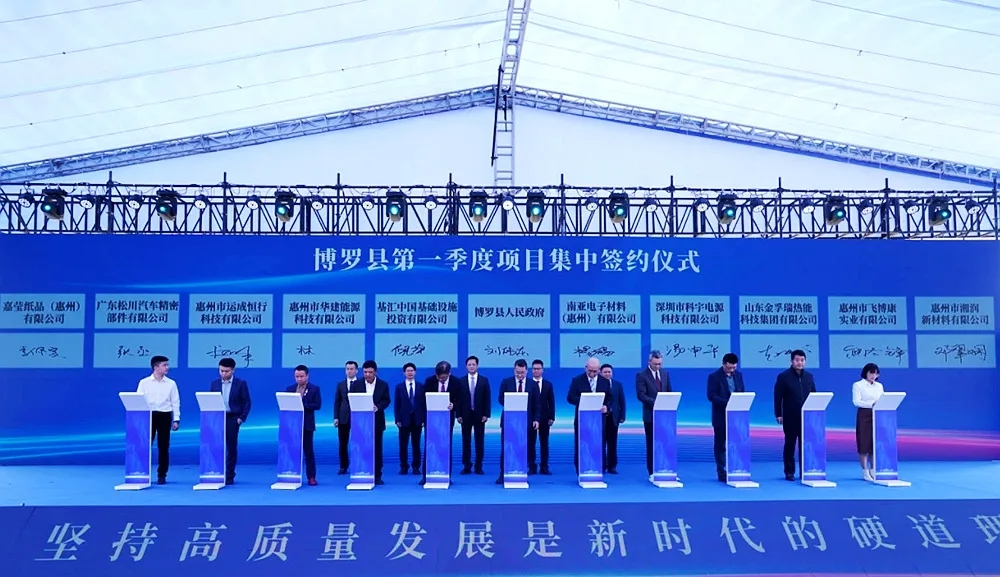 博羅縣高質(zhì)量發(fā)展大會暨第一季度項目集中簽約現(xiàn)場。