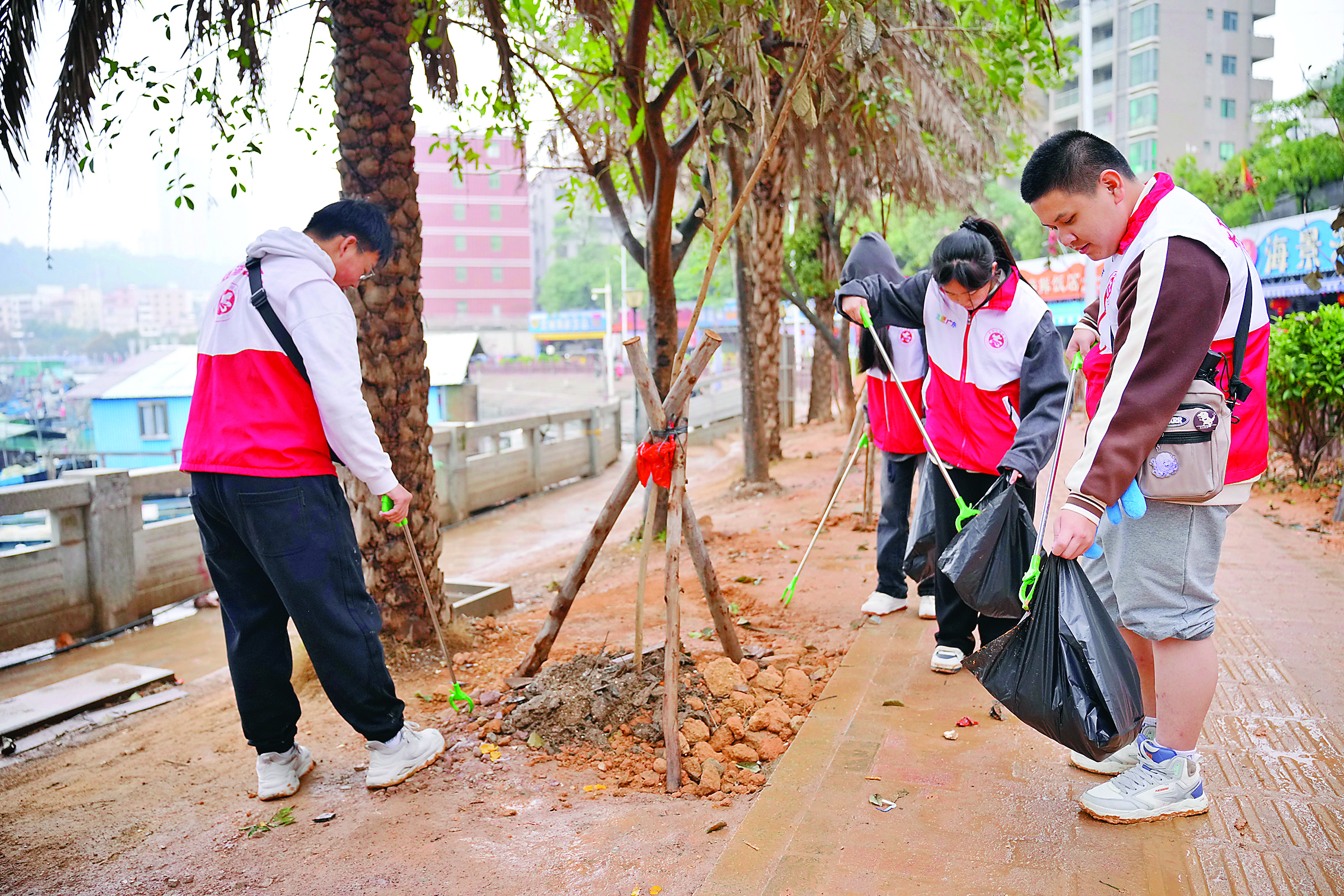 活動現(xiàn)場,志愿者在種植黃花風鈴木。 惠州日報記者周楠 攝