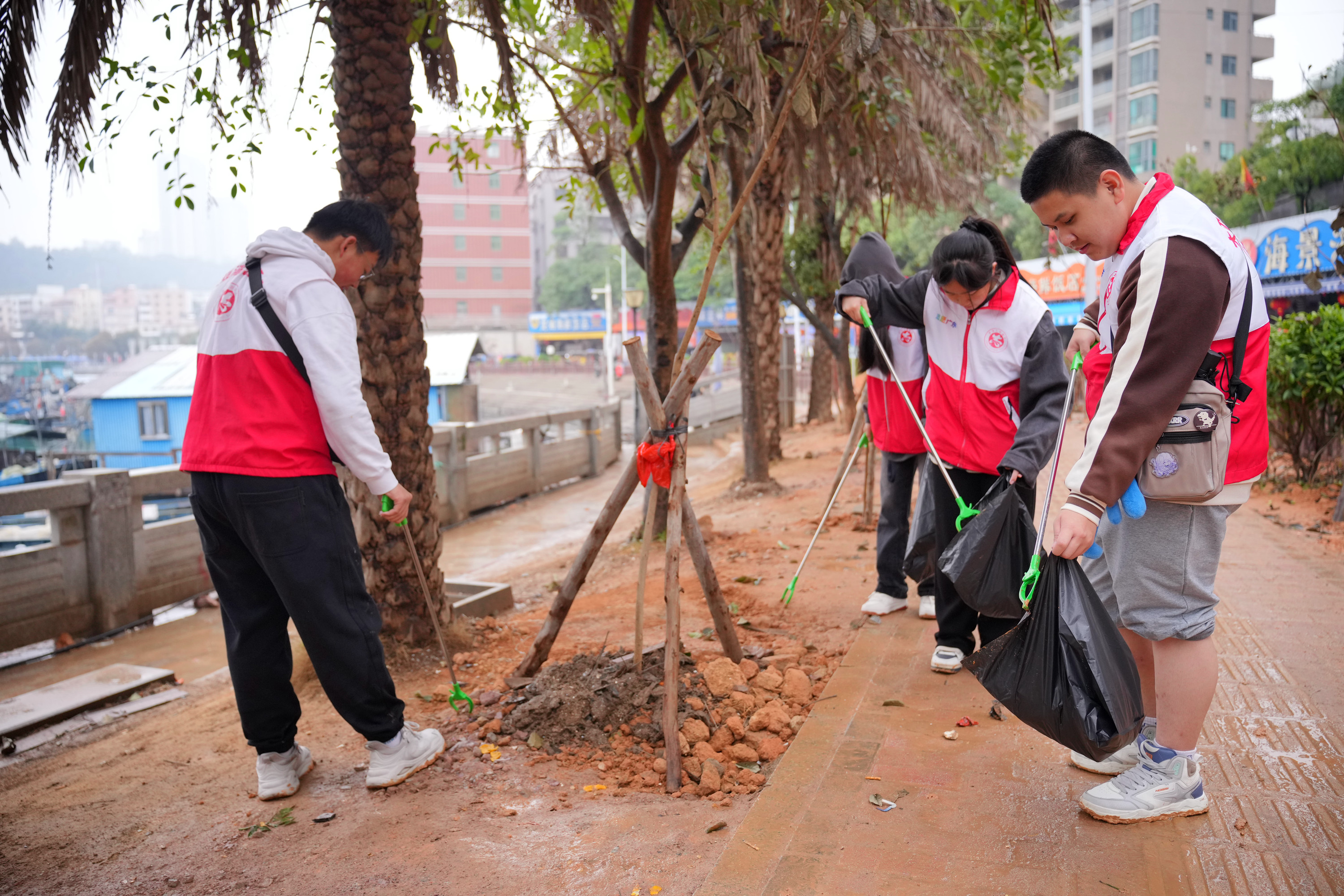 志愿者手拿垃圾鉗、垃圾袋參加添綠撿跑志愿服務(wù)活動;葜萑請笥浾咧荛 攝