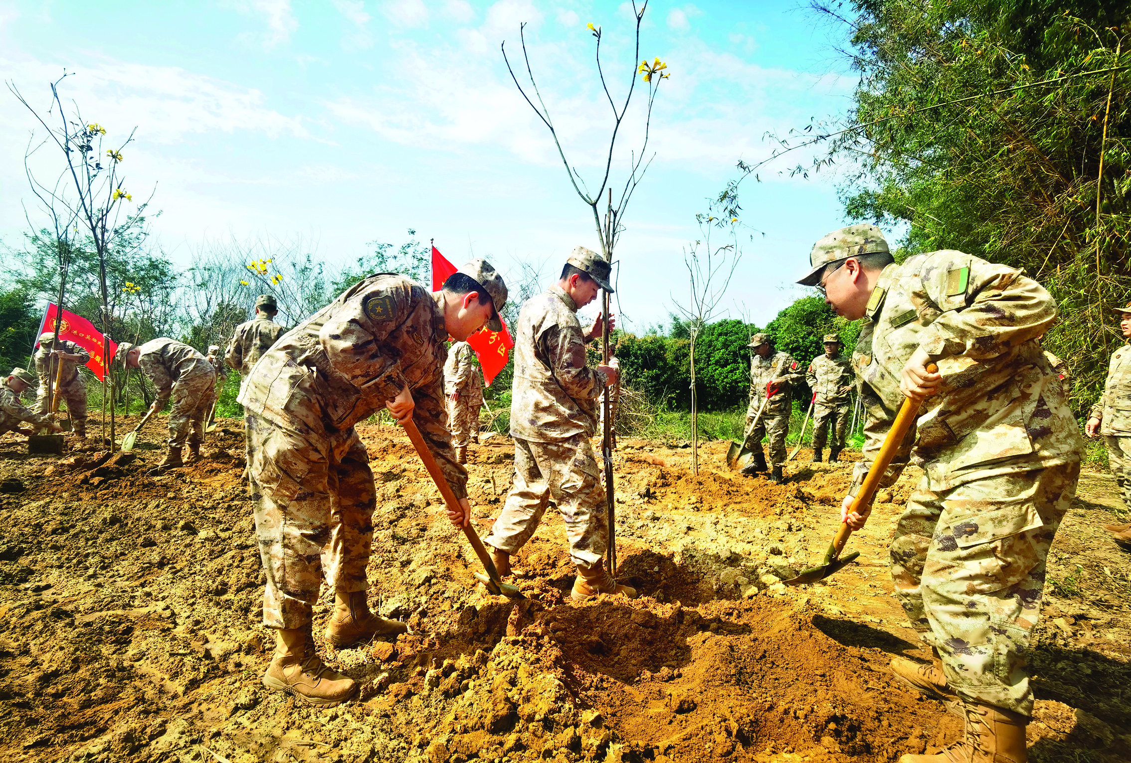 活動(dòng)當(dāng)天,官兵們揮鍬鏟土,植下200余株樹(shù)苗。 惠州日?qǐng)?bào)記者劉豪偉 通訊員王浩杰 攝