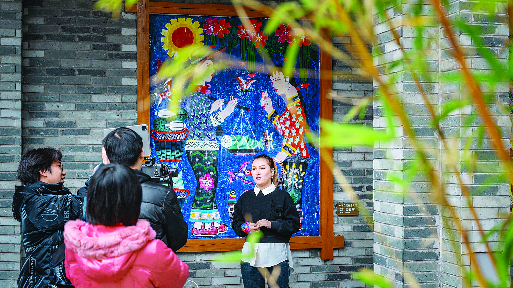 當(dāng)外國留學(xué)生妮卡“碰”上惠州非遺——龍門農(nóng)民畫,這項(xiàng)傳統(tǒng)藝術(shù)讓她驚喜連連、愛不釋手,迫不及待地實(shí)地采風(fēng)觀摩。
