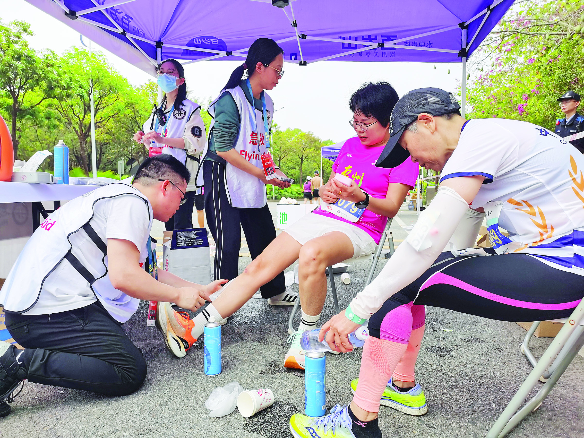 值得一提的是,為方便選手降溫,醫(yī)療保障組在賽事當(dāng)天進(jìn)一步補(bǔ)充了噴淋冰塊、噴霧劑和冰袋等降溫物資。