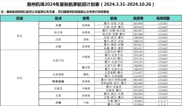 3月31日起,惠州機場將正式執(zhí)行2024年度夏秋航季航班計劃,執(zhí)行時間為2024年3月31日-10月26日。
