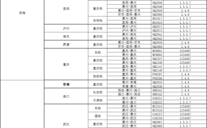。5)昆明:每天2班,周1357每天最高可達(dá)到3班
