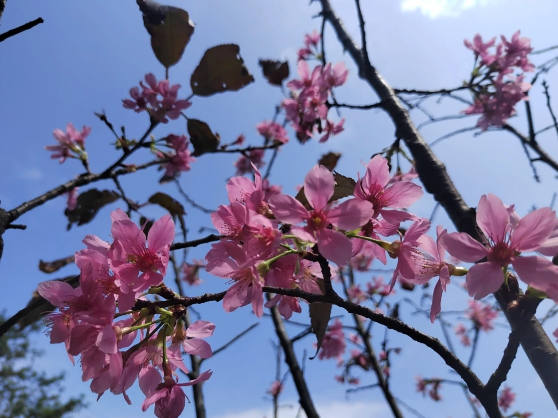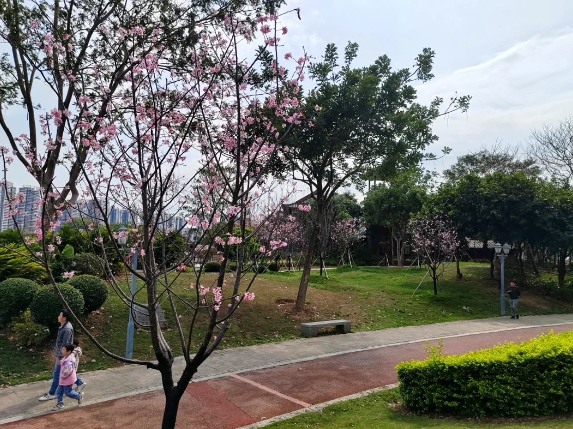 金山湖公園工作人員介紹,櫻花是落葉喬木,在溫暖的華南地區(qū)會(huì)呈現(xiàn)半落葉狀態(tài)。櫻花綻放時(shí),花開滿天,花團(tuán)錦簇,如云似霞、滿樹爛漫,深受人們喜愛。