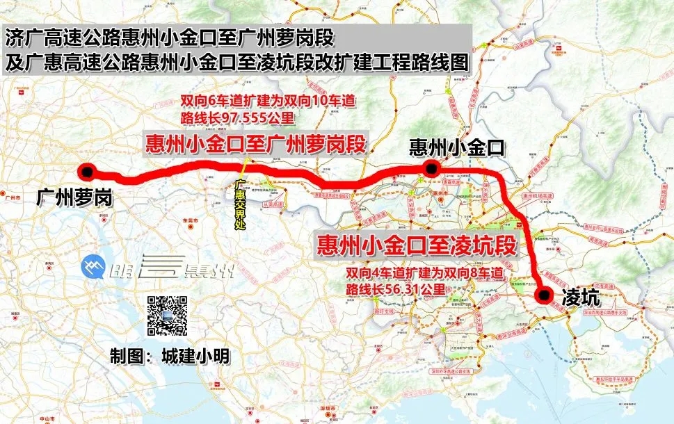 濟(jì)廣高速和廣惠高速公路擴(kuò)建工程:作為重點(diǎn)建設(shè)工程,其中濟(jì)廣高速公路小金口至蘿崗段將由雙向六車道擴(kuò)建為雙向十車道,廣惠高速公路小金口至凌坑段將由雙向四車道擴(kuò)建為雙向八車道,計(jì)劃今年底開工,2029年12月投產(chǎn)。