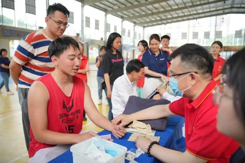 精彩的講座和籃球演示互動(dòng)結(jié)束后,孟衛(wèi)紅現(xiàn)場(chǎng)開展健康義診,義診期間,他耐心向大家宣傳健康科普知識(shí),并針對(duì)部分有亞健康問題的群眾開展針灸治療等健康服務(wù)。
