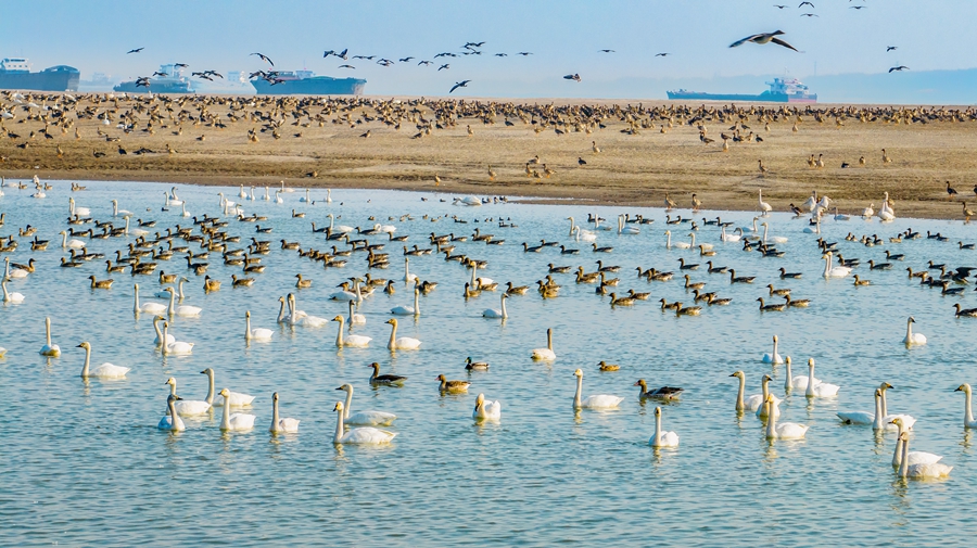 長(zhǎng)江九江段灘涂成了候鳥樂(lè)園。