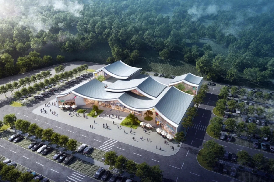惠州西服務(wù)區(qū)總體建筑面積約1.2萬平方米,分為東、西服務(wù)區(qū)。項目借鑒豐湖書院的文化內(nèi)涵和建筑特色,打造全省獨有的書院主題服務(wù)區(qū)。服務(wù)樓結(jié)構(gòu)靈感源自書院及惠州傳統(tǒng)民居,以“啟惠之書”為主題,屋頂設(shè)計為翻開的書本形態(tài),主體結(jié)構(gòu)采用木格柵、鋁板、金屬板屋面等材料,整體視覺明亮通透,具有書院風(fēng)格的獨特韻味。