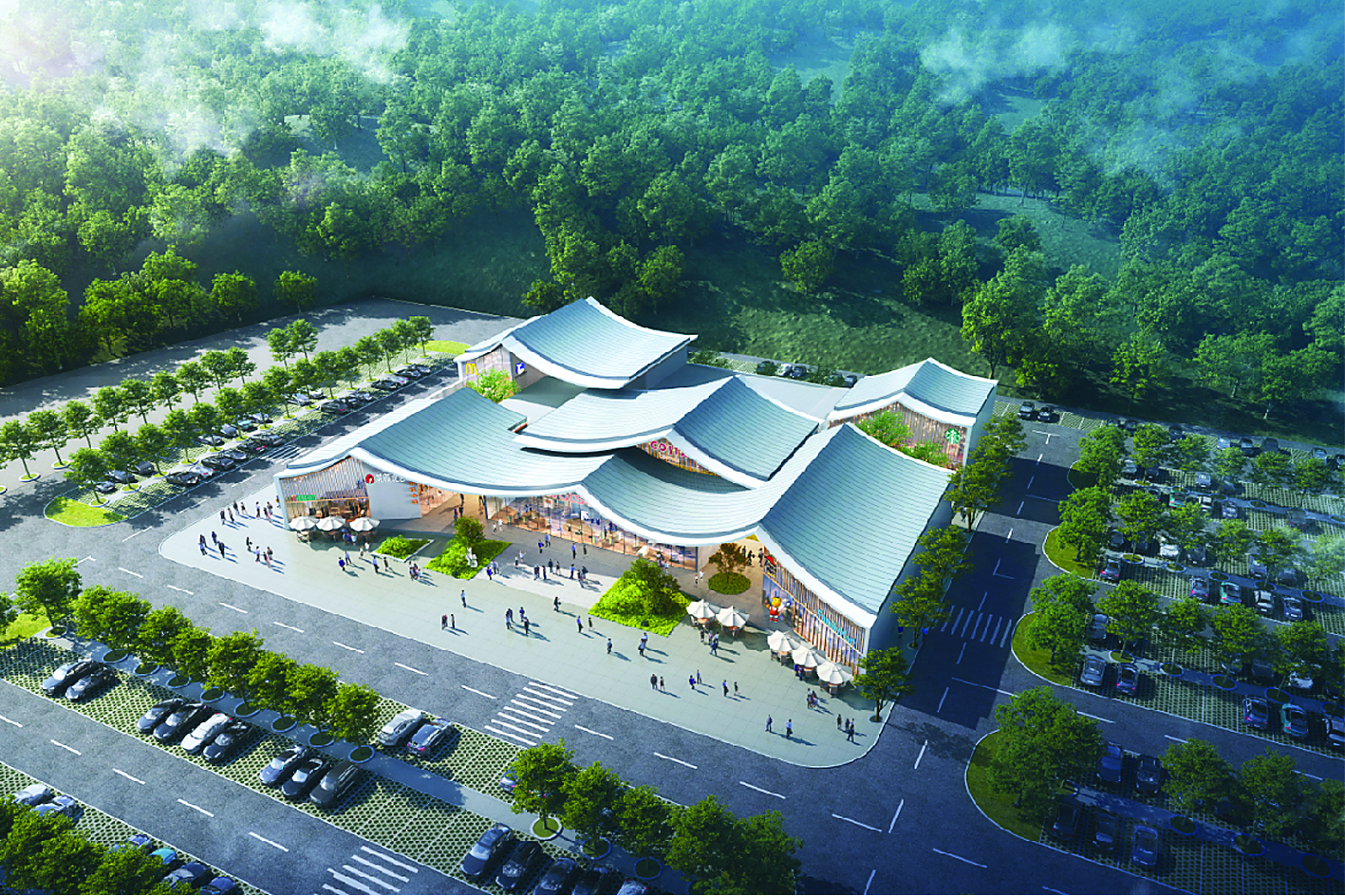 惠州西服務(wù)區(qū)總體建筑面積約1.2萬(wàn)平方米,分為東、西服務(wù)區(qū)。項(xiàng)目借鑒豐湖書(shū)院的文化內(nèi)涵和建筑特色,打造全省獨(dú)有的書(shū)院主題服務(wù)區(qū)。服務(wù)樓結(jié)構(gòu)靈感源自書(shū)院及惠州傳統(tǒng)民居,以“啟惠之書(shū)”為主題,屋頂設(shè)計(jì)為翻開(kāi)的書(shū)本形態(tài),主體結(jié)構(gòu)采用木格柵、鋁板、金屬板屋面等材料,整體視覺(jué)明亮通透,具有書(shū)院風(fēng)格的獨(dú)特韻味。