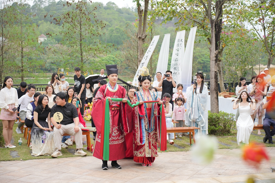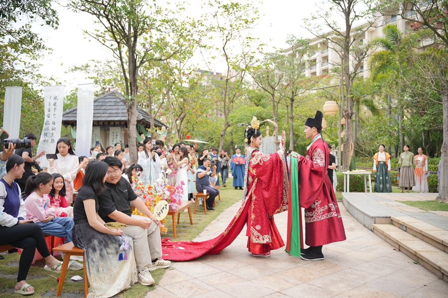 3月30日的惠州白鷺湖雅居樂(lè)喜來(lái)登度假酒店,成為了春日里一道迷人的風(fēng)景。在這里,“春日雅集·宋韻婚禮沙龍”活動(dòng)如一幅流動(dòng)的畫(huà)卷,展現(xiàn)了宋代婚禮的莊重與典雅,帶領(lǐng)現(xiàn)場(chǎng)賓客步入千年前的風(fēng)雅時(shí)代。