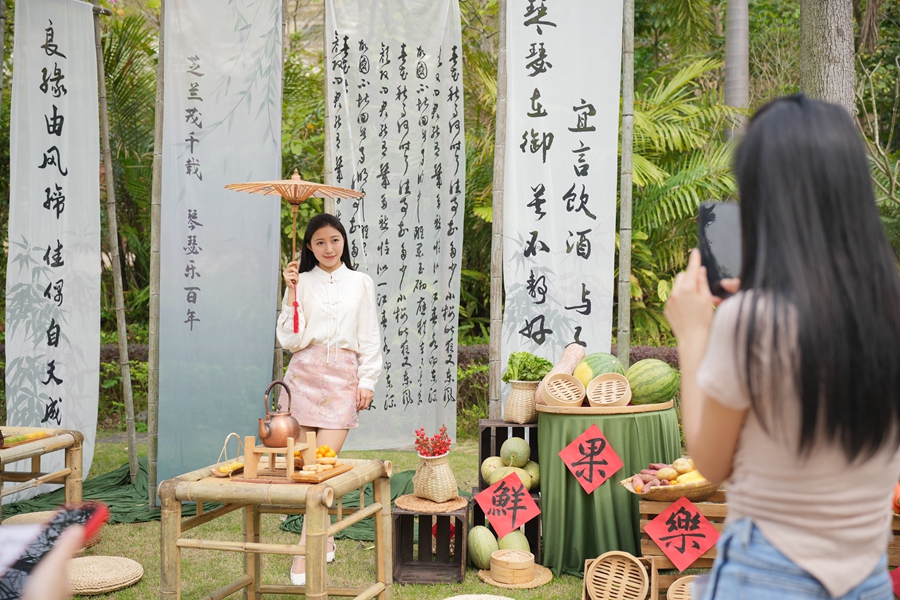 在古典氛圍中拍照打卡。