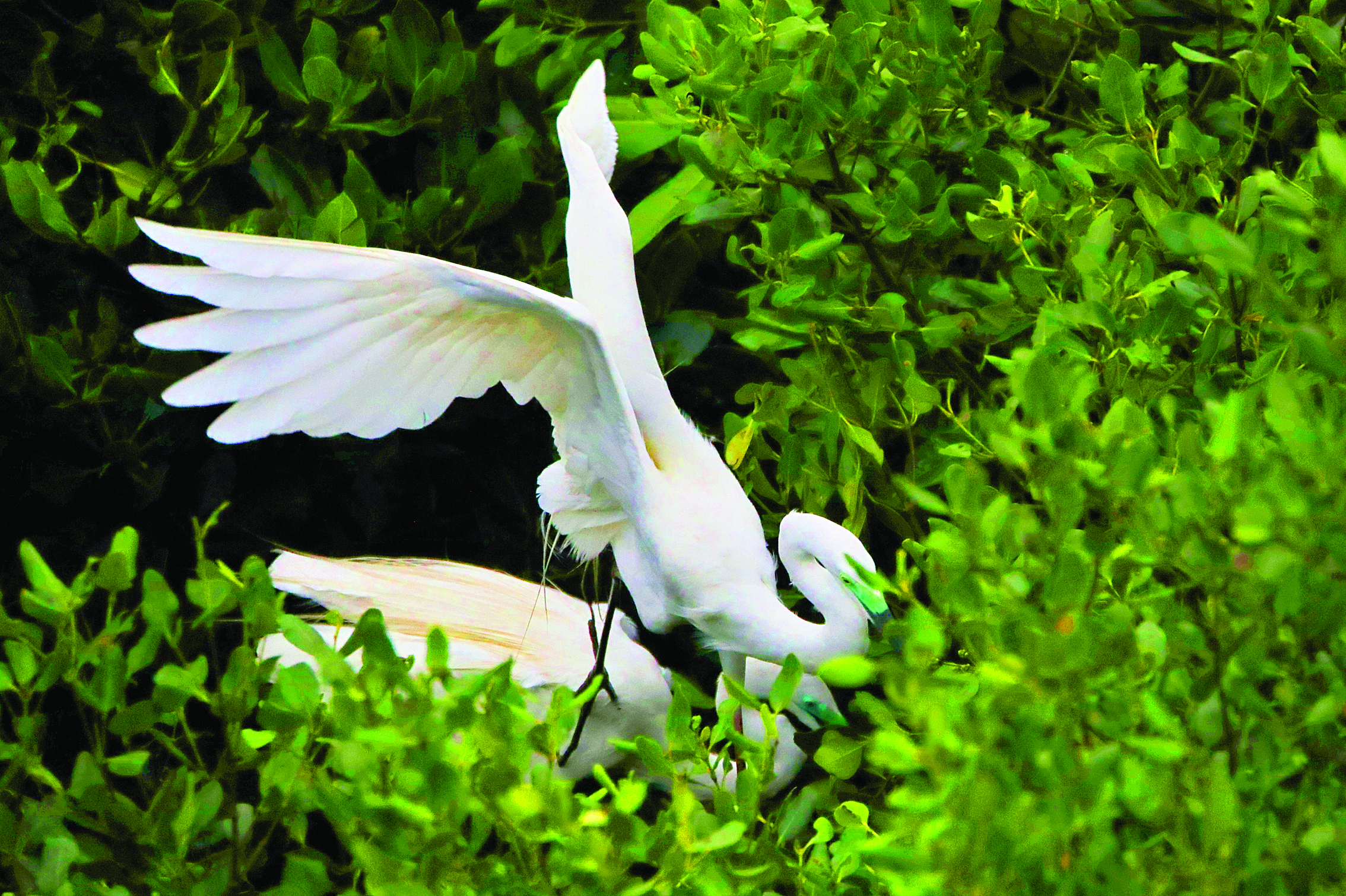 春天是繁殖的季節(jié),一對鷺鳥在交尾。