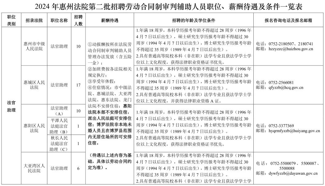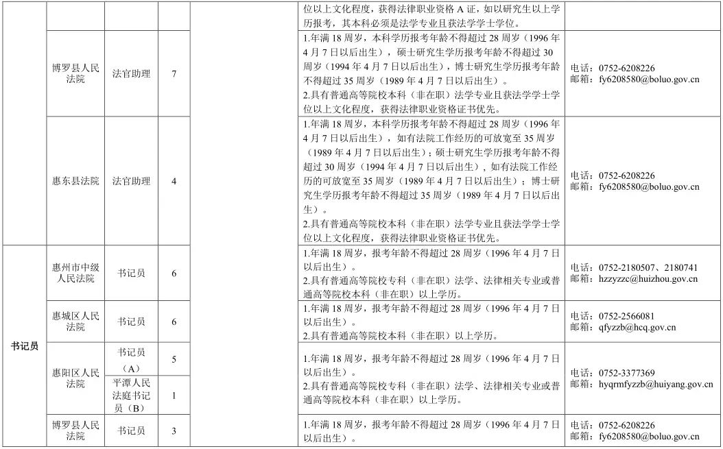 (二)書記員23名(含市法院6名、惠城法院6名、惠陽法院6名、博羅法院3名、龍門法院2名)。