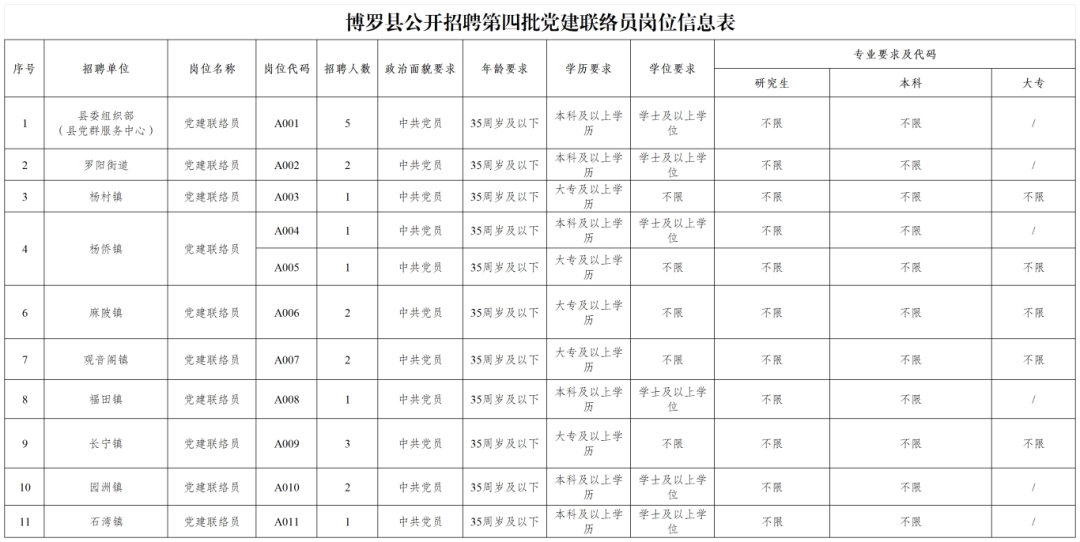 博羅縣招聘第四批黨建聯(lián)絡(luò)員21名