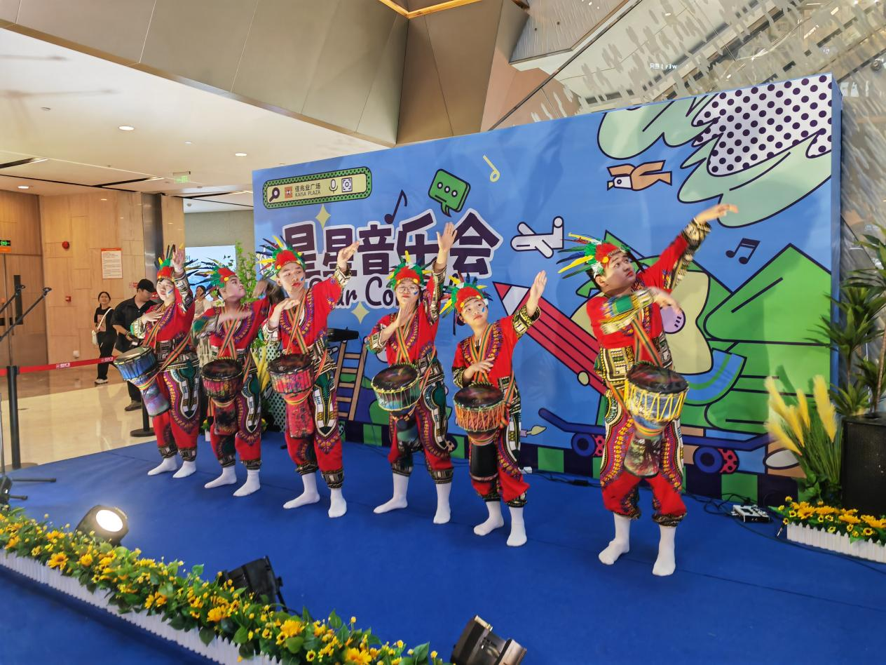 “We will we will rock you,we will we will rock you!”4月13日下午,一曲震撼人心的非洲鼓演奏回蕩在佳兆業(yè)廣場中央,吸引了眾多市民圍觀。