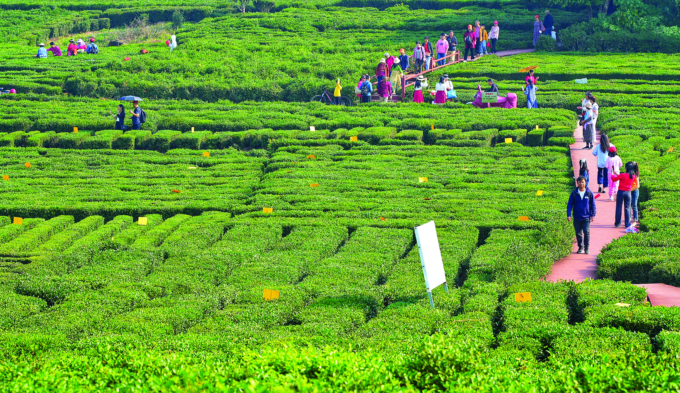 上午10時許,博羅縣柏塘鎮(zhèn)萬畝茶園開始出現(xiàn)游人身影。他們從一輛輛大巴車上下來,每個人都面露笑容,“空氣真好,一眼望去綠油油的,心曠神怡。”黃先生已經(jīng)退休,平時喜歡游山玩水,這次跟朋友組團來游玩,他們或穿梭在茶園中間,拍照、賞景,或沿著茶園棧道、茶園觀光綠道閑庭漫步。