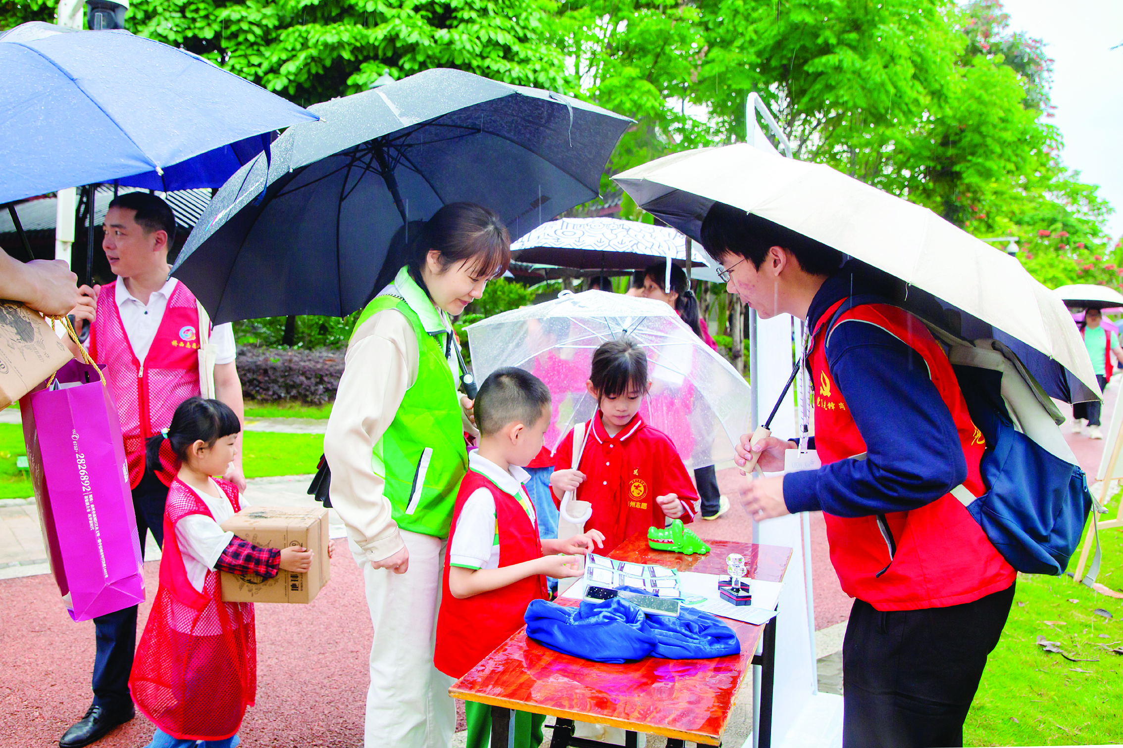 “什么生態(tài)系統(tǒng)被譽(yù)為‘地球之腎’?”“今年世界地球日的口號(hào)是什么?”“保護(hù)水環(huán)境,我們?cè)撚檬裁礃拥南匆路郏俊薄?月21日上午,雨后的金山湖濕地公園草木蔥郁、水清如碧。在美不勝收的景色中,惠州市2024年世界地球日濕地研學(xué)暨自然資源法治文化園普法宣傳活動(dòng)舉行,一系列地球日知識(shí)科普、濕地主題親子游園活動(dòng)吸引了不少市民帶著孩子積極參與、踴躍答題,勾勒出一幅人與自然和諧共生的景象。