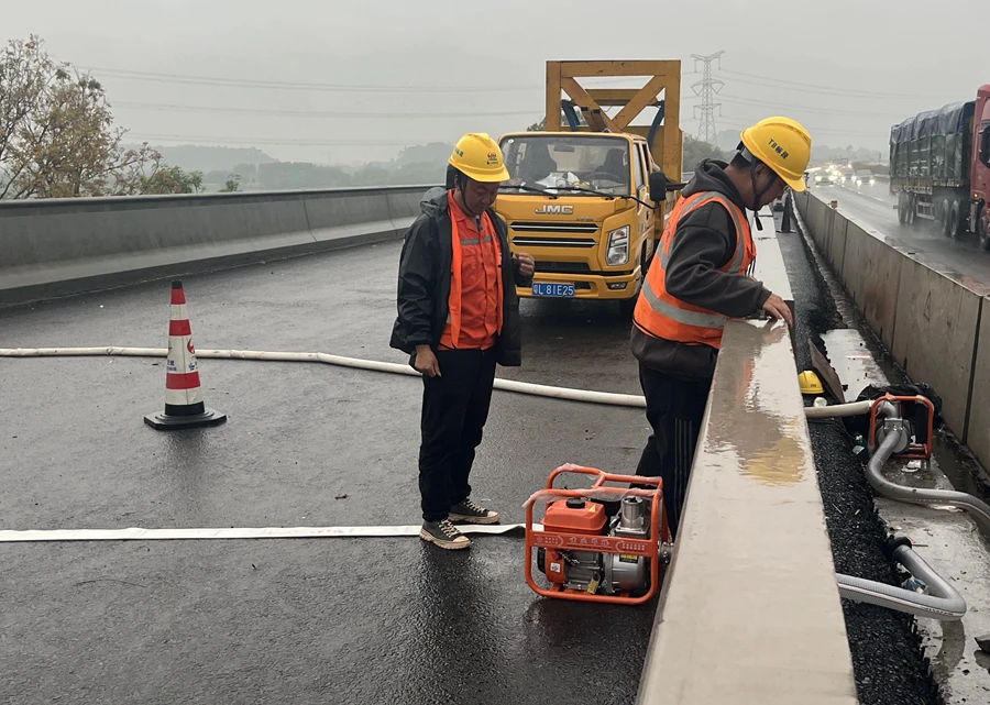 4月22日,受連日暴雨影響,惠河高速改擴建項目施工現(xiàn)場多處出現(xiàn)大量積水,路側(cè)邊坡存在滑溜風險。為做好防汛防險工作,中交路建承建的T8標項目部成立防汛應(yīng)急黨員突擊隊,開展道路積水抽排、水碼灌水、淤泥清理、加寬排水溝等工作,清理6處積水點明溝排水,加固2處邊坡,全段抽水8處,清理橫向排水口雜物78處。