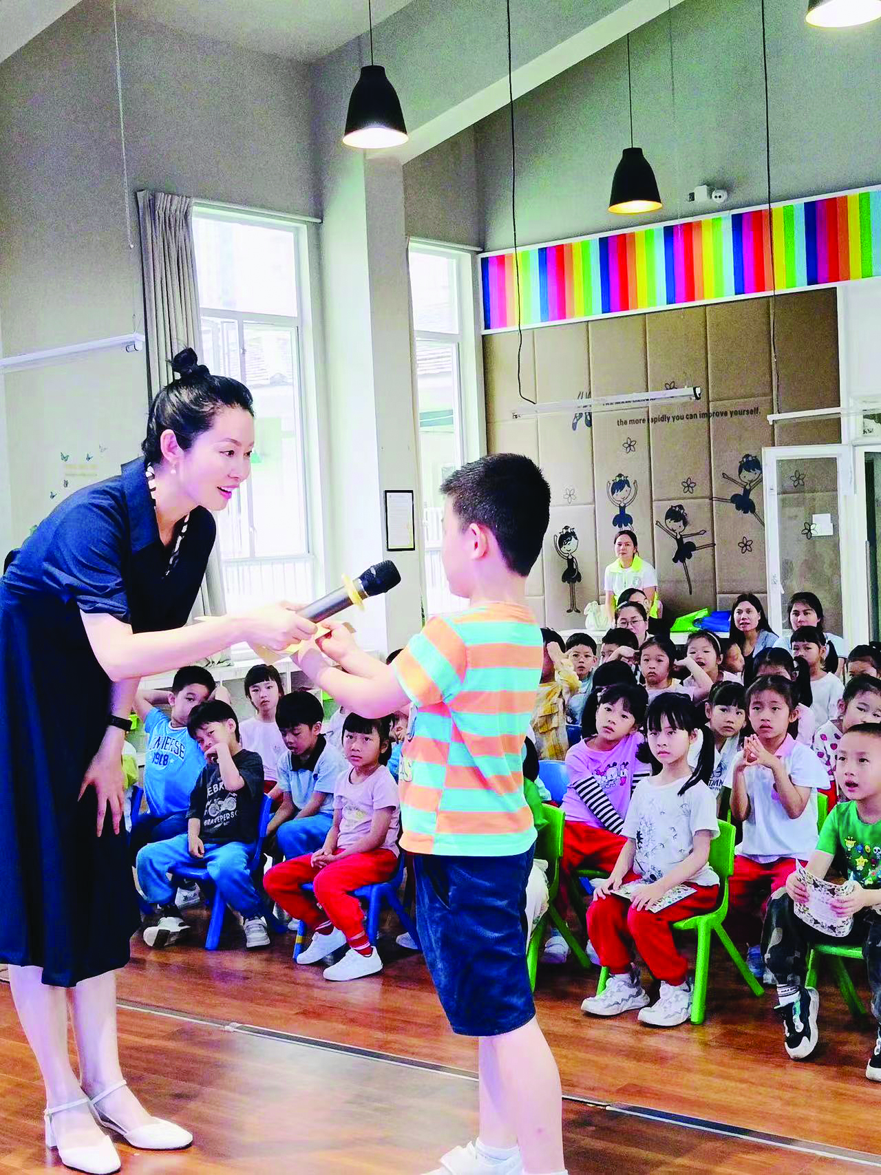 為進一步引導(dǎo)少年兒童增強文明意識,養(yǎng)成良好的文明行為習(xí)慣,并通過一名兒童帶動一個家庭,推動社會文明程度有效提升,胡楓從禮儀的涵義出發(fā),分別講述了儀容禮儀、服飾禮儀、稱呼禮儀、致意禮儀、接送禮儀、餐桌禮儀及校園禮儀,引導(dǎo)孩子們學(xué)禮儀、知禮儀、行禮儀,培育和踐行社會主義核心價值觀;顒哟┎瀣F(xiàn)場提問、現(xiàn)場演示教學(xué)環(huán)節(jié),風趣幽默、引人入勝,現(xiàn)場掌聲不斷。小朋友們還積極上臺展示所學(xué)禮儀知識,收獲了豐富的獎品。