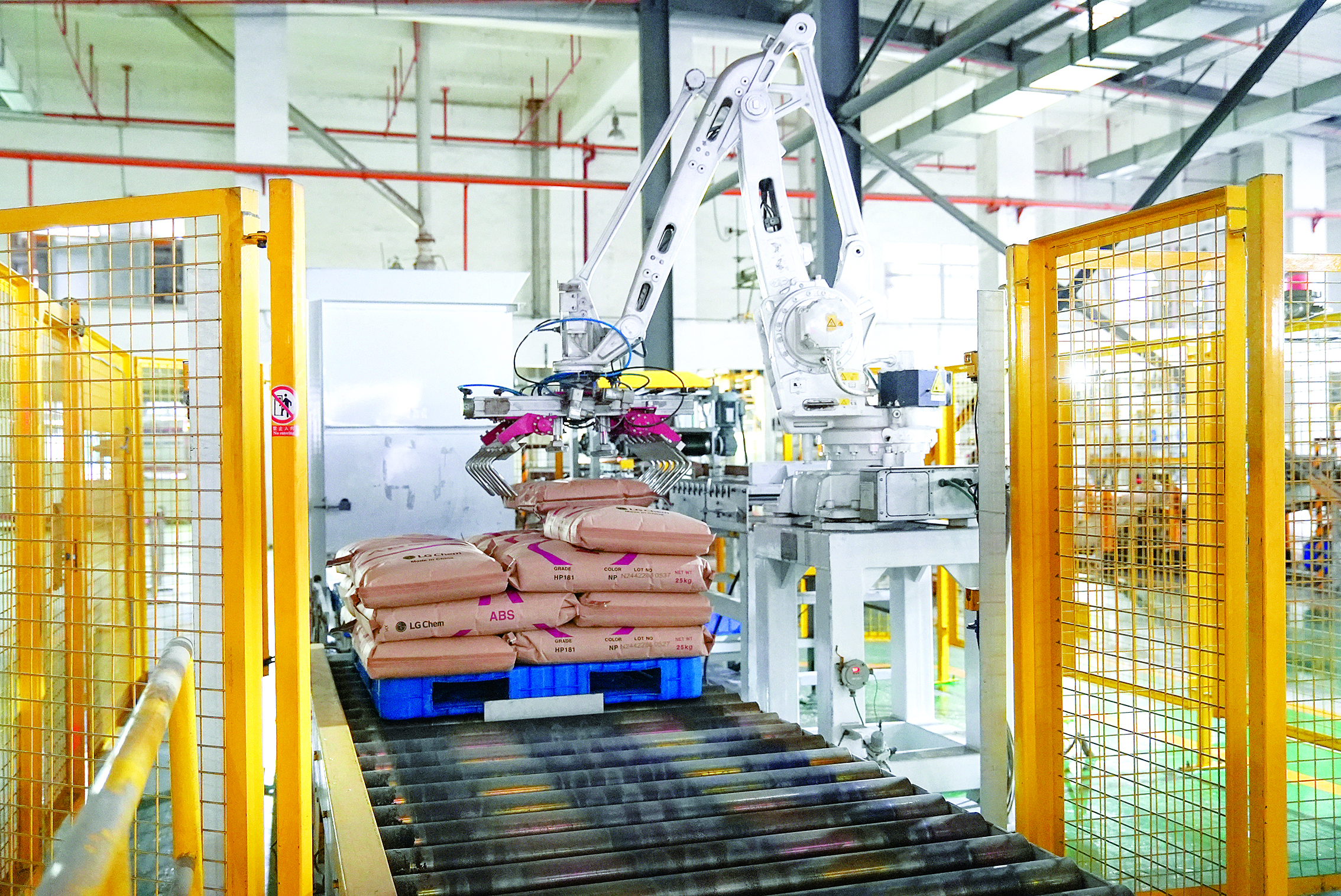 在位于惠州大亞灣石化區(qū)的樂金化學(惠州)化工有限公司(以下簡稱“樂金化學”)生產車間里,機械臂等設施24小時不停運作,源源不斷地產出各類ABS樹脂產品,銷往小米、華為、美的、普聯等企業(yè),用于生產家用電器、電子電氣、汽車、玩具、建材等產品。