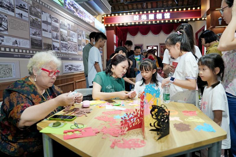 惠城非遺展示館現(xiàn)場剪紙教學;葜萑請笥浾哧悵 攝