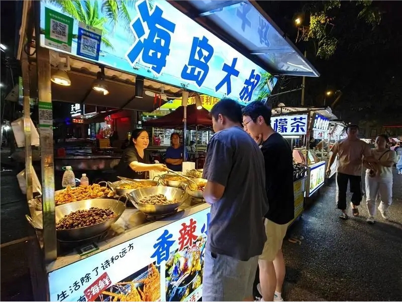 楊耀玲是一名“80后”攤主,她在龍豐夜市經(jīng)營的攤位銷售各種不同口味的香辣小海鮮,因為味道好賣相佳,每天晚上都賣得干干凈凈。說起入行的經(jīng)歷,楊耀玲打開了話匣子:“老公之前在東莞開了一家印花設(shè)備制造廠,后來因為疫情,公司倒閉關(guān)門,虧了不少錢!睘榱藢で笮碌某雎罚瑮钜岷屠瞎挝慕苌塘亢,花好幾千元前往福建跟人學了烹飪香辣海鮮的手藝后,來到惠州龍豐夜市開始了自己的擺攤之路。