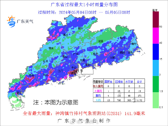 5日下午到夜間,韶關(guān)、河源、梅州、珠三角北部有中雨局部暴雨;