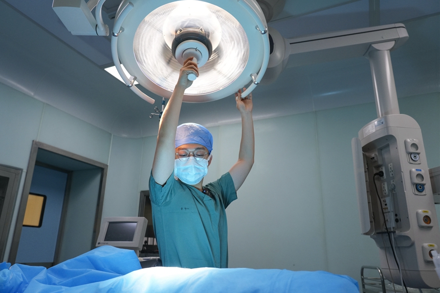 李兆翼站在無影燈下協(xié)助手術(shù)。