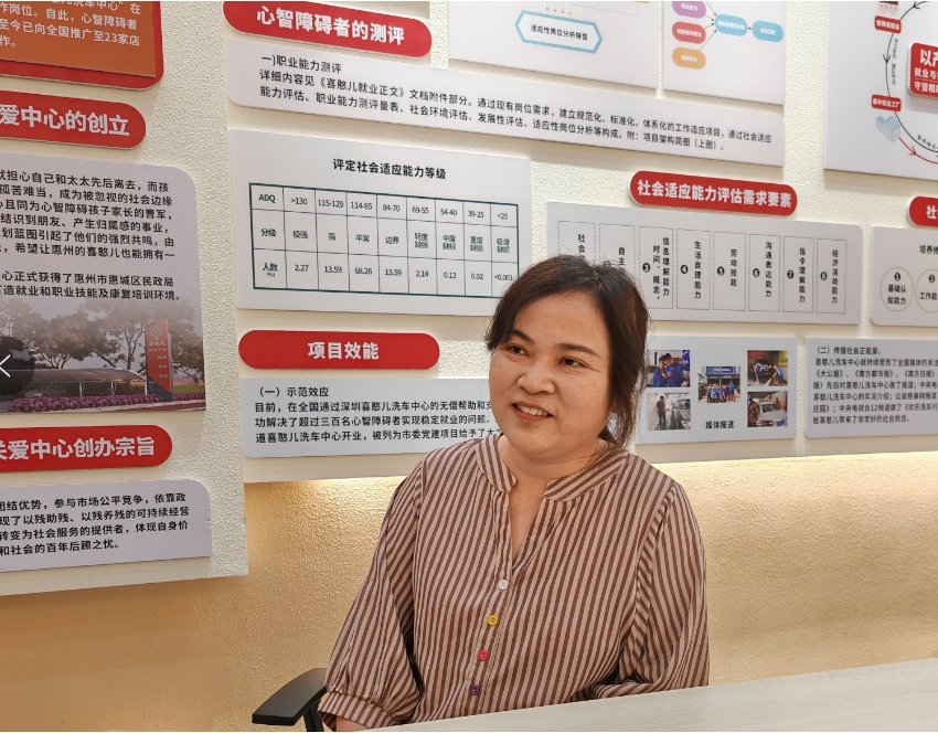 汪婷把采訪的地點(diǎn)選擇在兒子工作的惠城區(qū)喜憨兒洗車中心,對(duì)于這個(gè)抱養(yǎng)的孩子,汪婷有著特殊的感情。他們一起經(jīng)歷了很多,慶幸的是,一切都在慢慢變好。