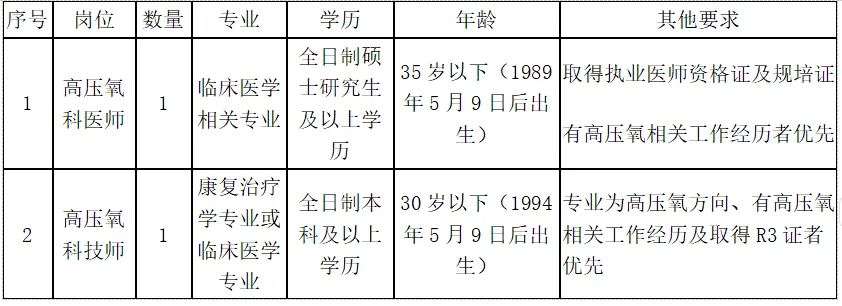 惠州市第三人民醫(yī)院高壓氧科醫(yī)師、技師招聘