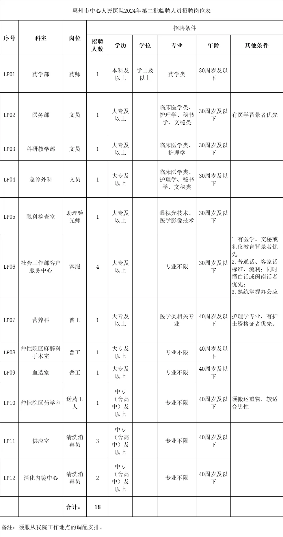 惠州市中心人民醫(yī)院2024年第二批臨聘人員招聘