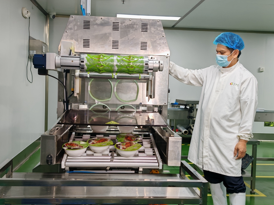 粵港澳大灣區(qū)(廣東·惠州)綠色農(nóng)產(chǎn)品生產(chǎn)供應(yīng)基地內(nèi)一企業(yè)正加緊生產(chǎn)預(yù)制菜;葜萑請(bào)記者陳春惠 攝