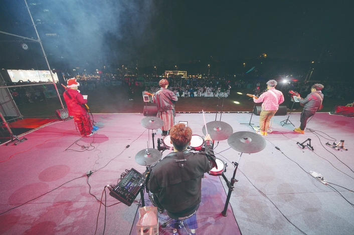 樂隊(duì)在市民樂園二期獻(xiàn)唱。