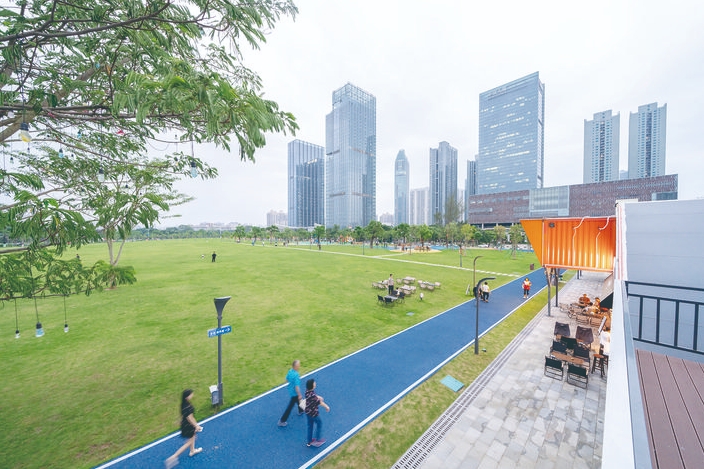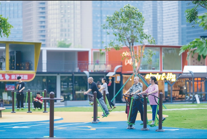 市民在休閑健身區(qū)域鍛煉。
